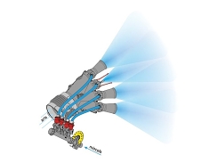 • Kinematika pohybu ramen umožňuje udržovat konstantní výšku postřikové hlavy nad zemí bez použití vertikálního válce