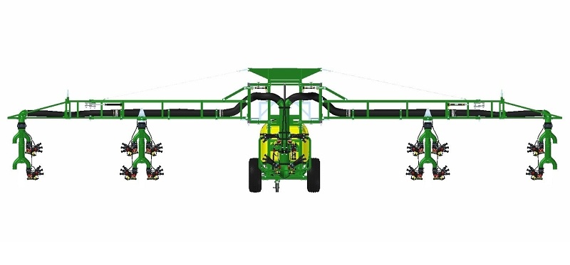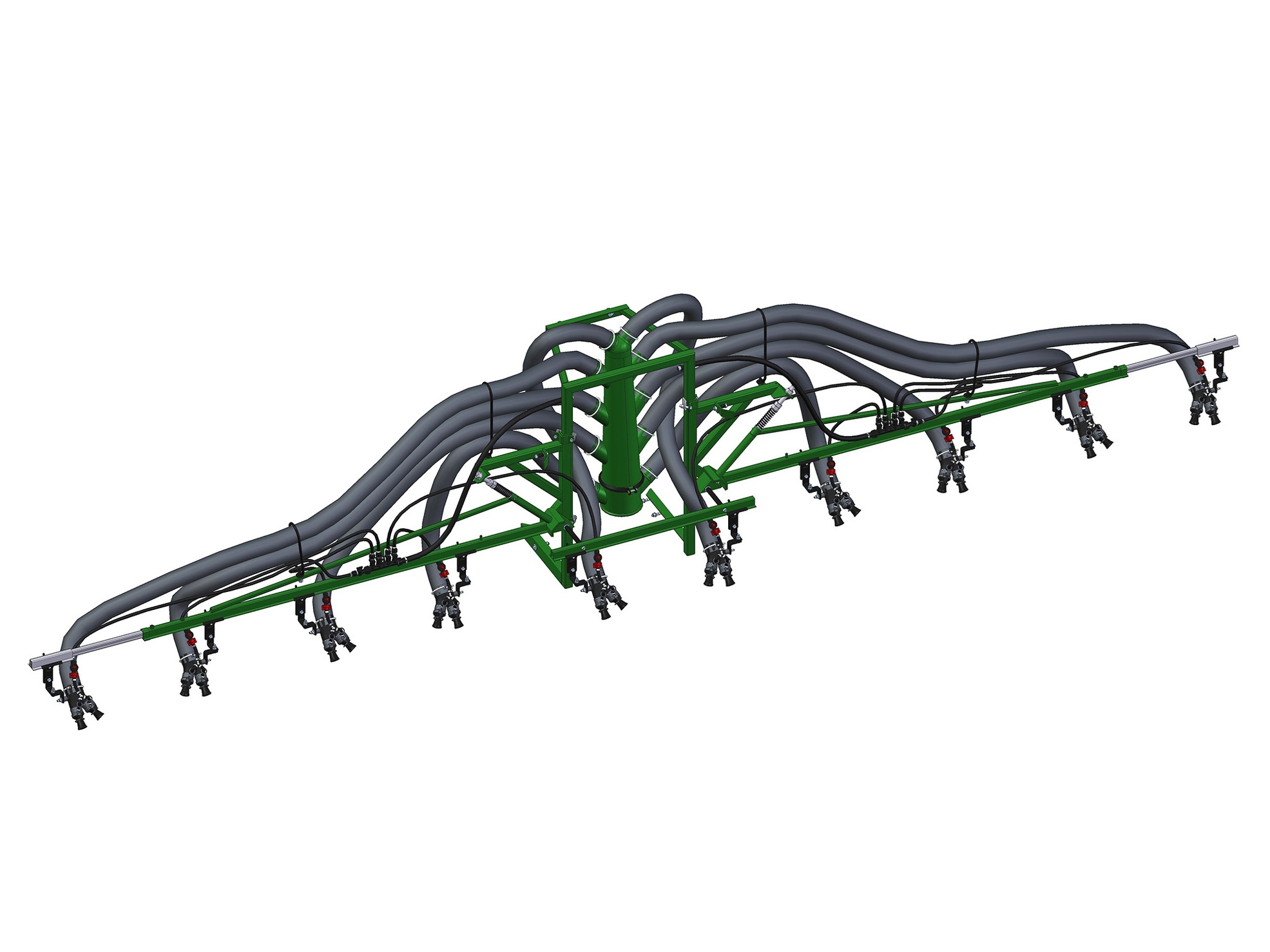 - 12 m hydraulické vzduchové rameno – 18 vývodov postreku, 2 trysky