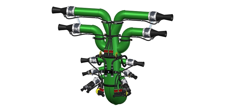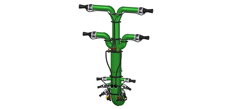 Hydraulicko-pneumatická aplikačná hlava pre pestovanie vo fóliovníkoch.
