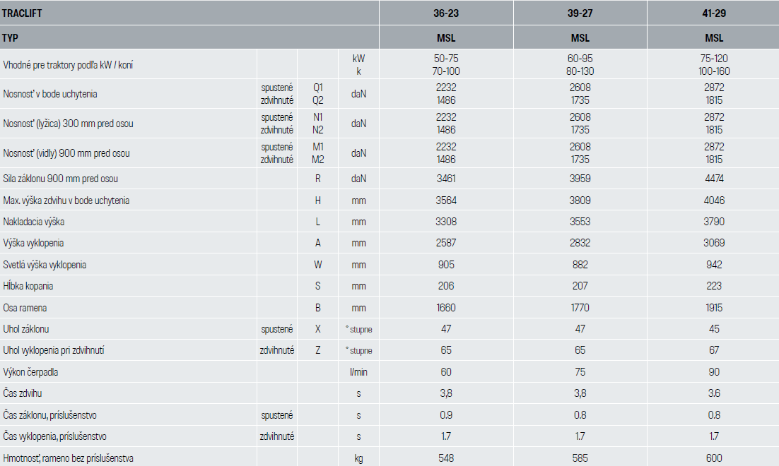 Séria TracLift je vybavená mechanickým systémom samovyrovnávania, ktorý zabezpečuje, že príslušenstvo udržiava konzistentný pracovný uhol v celom rozsahu zdvihu.